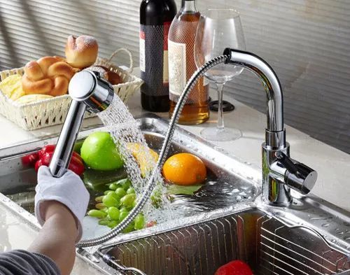 May wish to change to this type of pull-out faucet, the height and length can be adjusted arbitrarily so that you can use the faucet more conveniently, washing vegetables, washing sinks are particularly easy.